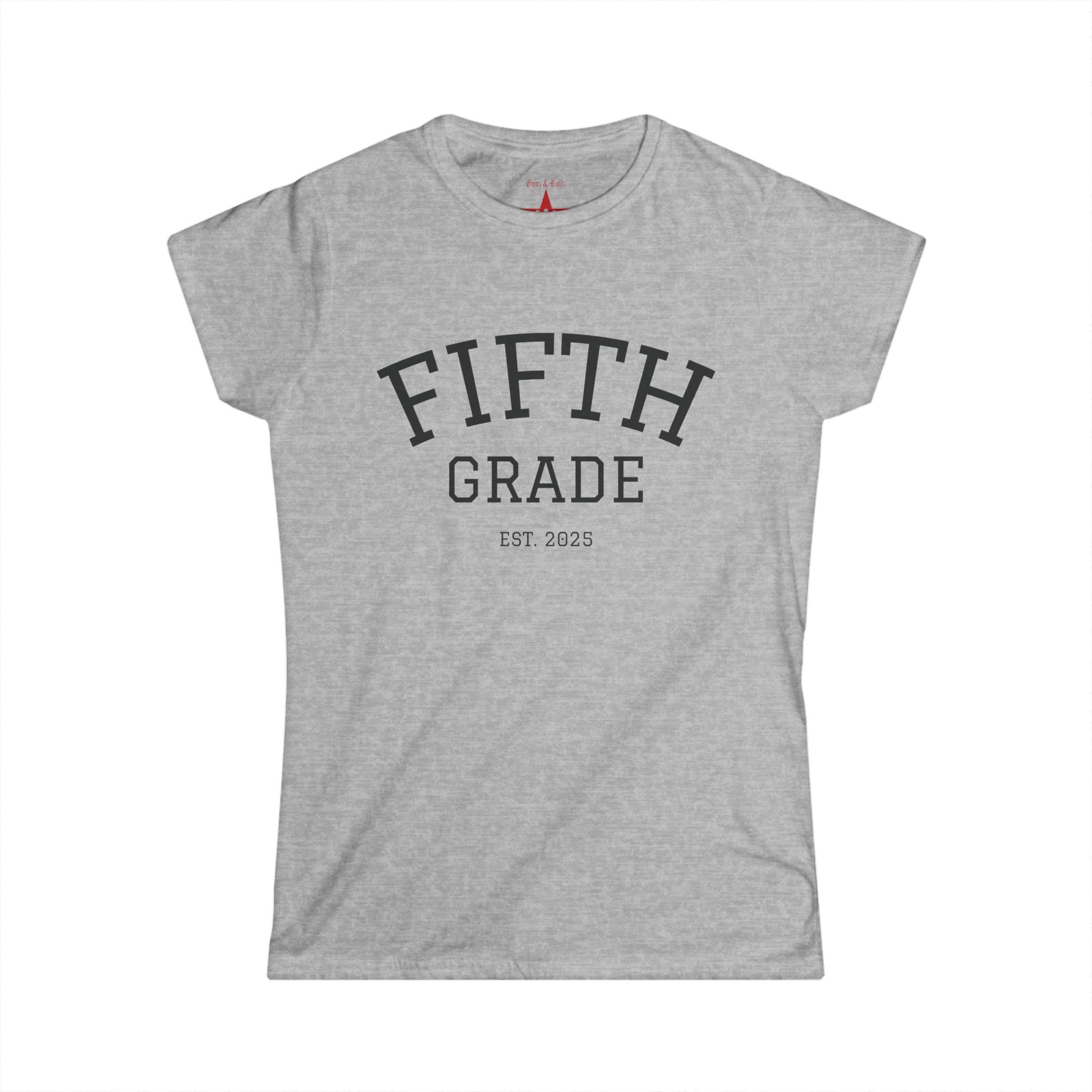 Embrace a blend of comfort and style with this women's softstyle tee, perfect for casual outings or lounging at home. This lightweight and breathable t-shirt boasts a semi-fitted silhouette that gracefully flatters various body types. Its ribbed collar and double-stitched hems provide durability, ensuring it holds its shape wash after wash. Ideal for fifth graders celebrating milestones, this tee serves as a delightful gift for birthdays, back-to-school, or even an end-of-year celebration. The playful design adds a fun vibe, making it a perfect staple for any young student's wardrobe. Celebrate special moments in style!