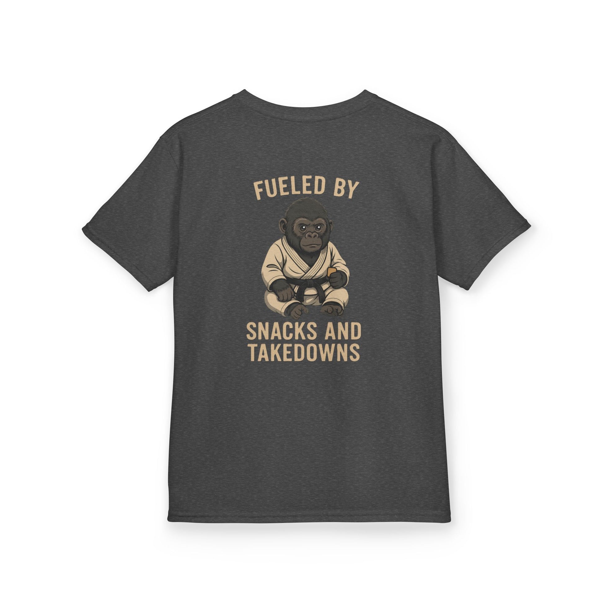 Kids “Fueled by Snacks and Takedowns” Gorilla Jiu-Jitsu Tee